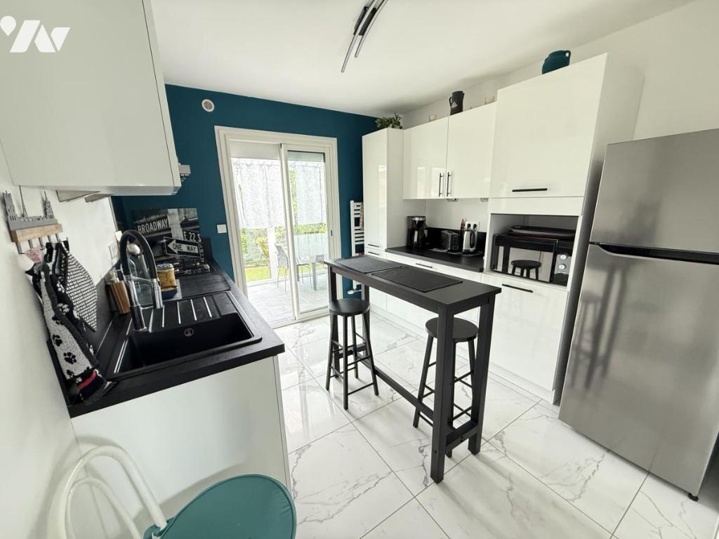 Avec un hall d'entrée desservant un séjour de 27 m², cuisine aménagée et équipée, deux chambres, une salle d'eau avec douche et vasques, une véranda avec store banne et un WC indépendant.
